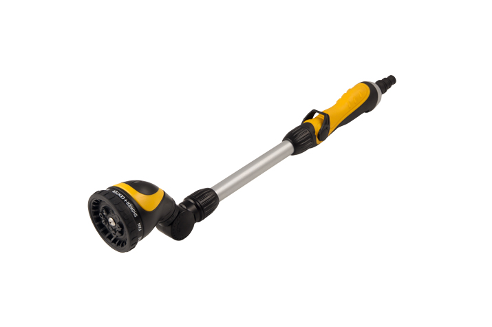 این محصول با کیفیت ساخت بالا در کشور تایوان تولید شده و با داشتن ۱۰ حالت مختلف پاشش آب امکان استفاده در شرایط مختلف را فراهم میکند. بدنه فلزی از جنس آلیاژ روی همراه با روکش TPR مقاومت بالایی در برابر ضربه، زنگزدگی و سایش دارد. برای مشاهده انواع ابزار باغبانی میتوانید به