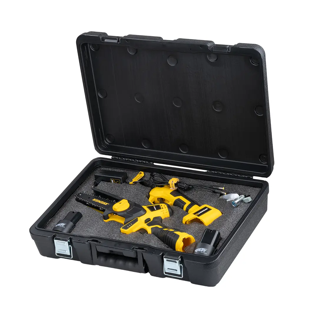 قیچی شارژی این مجموعه قادر است شاخههایی با قطر 15 تا 28 میلیمتر را با دقت بالا برش دهد، در حالی که اره زنجیری 6 اینچی با عمق برش 130 میلیمتر برای قطع شاخههای ضخیمتر بسیار کارآمد است.