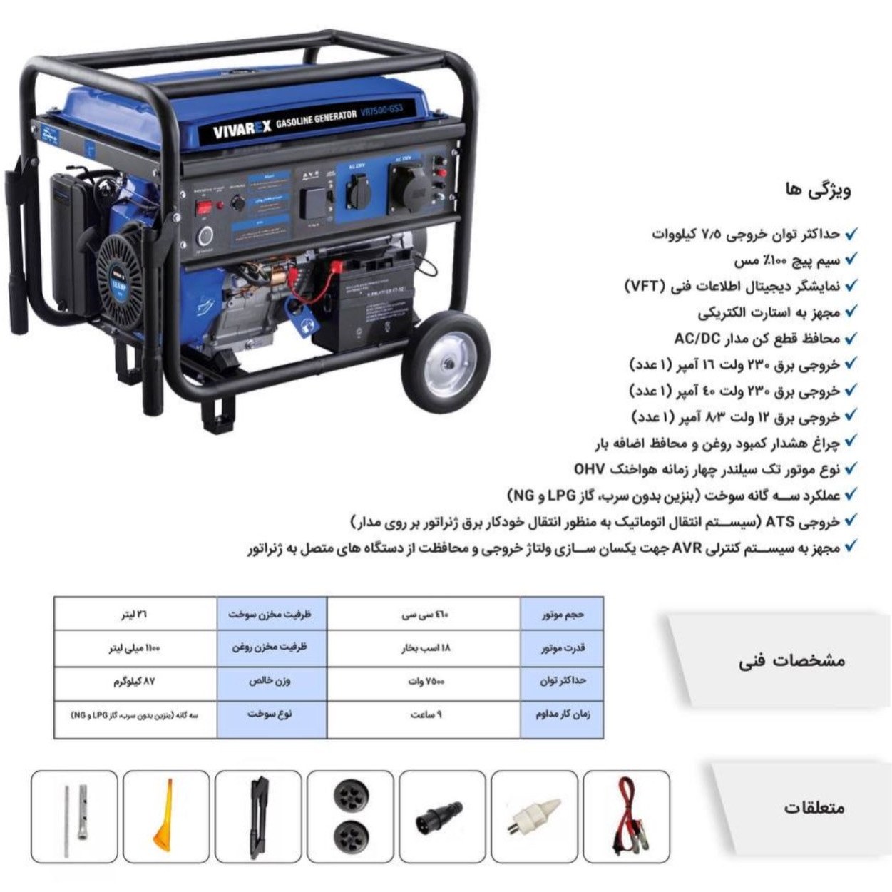 - موتور برق سه گانه ۷۵۰۰ وات VR7500-GS3