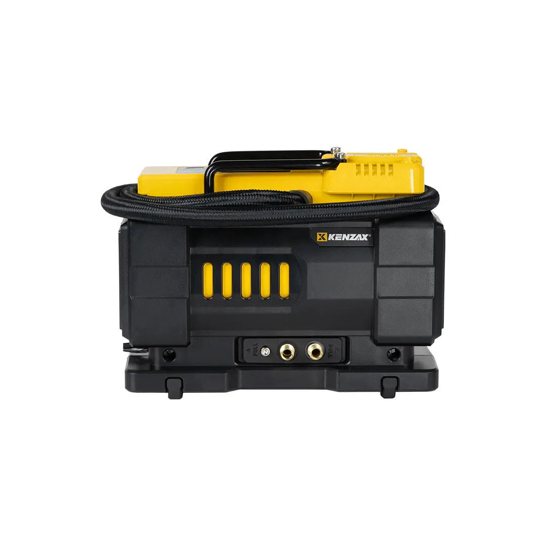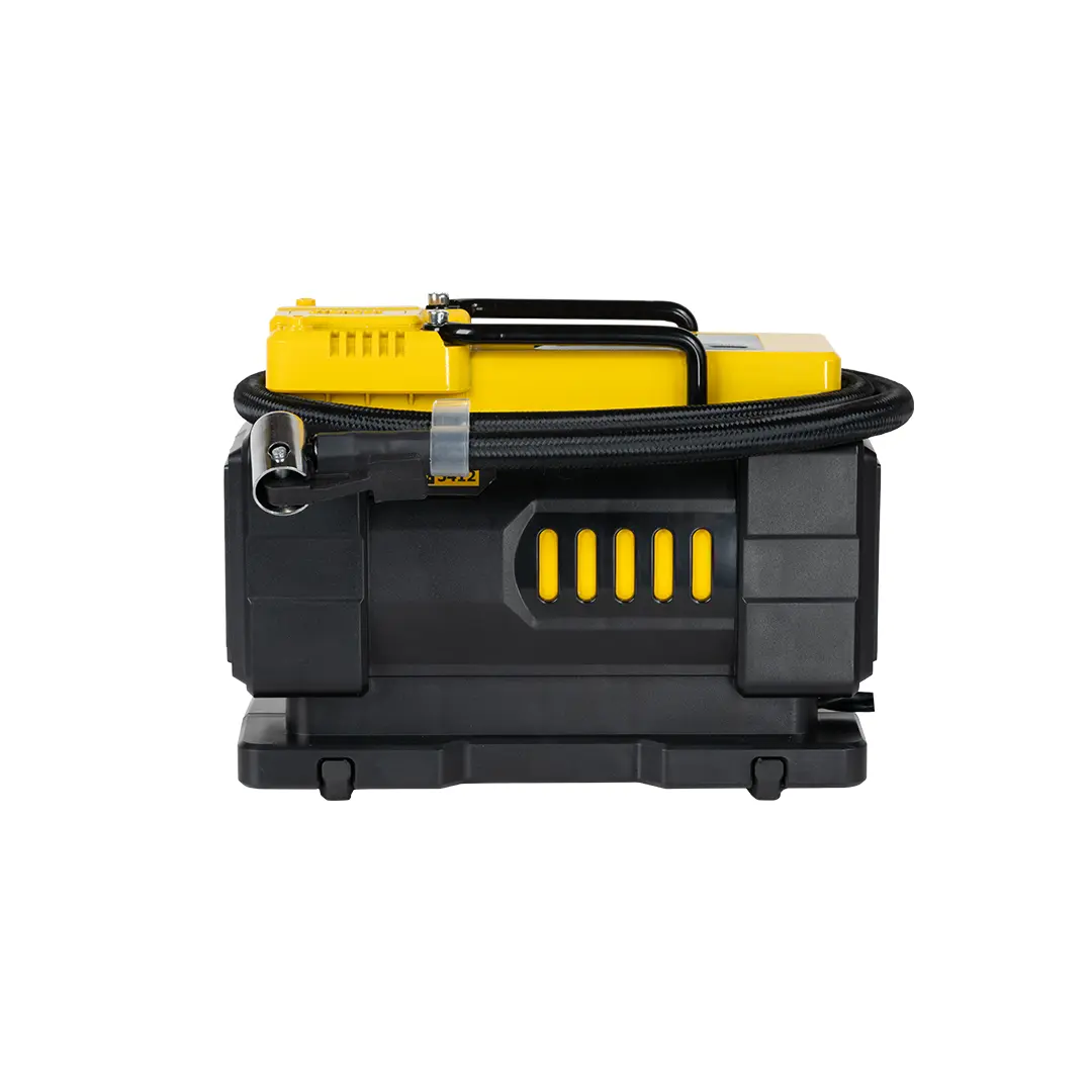 این مدل با منبع تغذیه 12 ولت DC طراحی شده و بهراحتی از طریق سوکت فندکی خودرو یا با استفاده از کابل اتصال به باتری قابل استفاده است. موتور تک سیلندر دستگاه همراه با پایههای لاستیکی ضد لرزش باعث کاهش صدا و افزایش پایداری هنگام کار میشود. 🔧